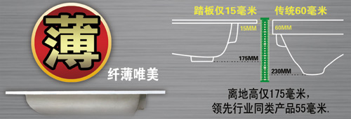 OL-D200離地高度僅為175mm,比行業(yè)同類產品整整降低了55mm。市面上規(guī)格為600mm×460mm的直沖式蹲便器的離地高度一般為200mm-230mm,帶S彎管蹲便器離地高度高達260mm。