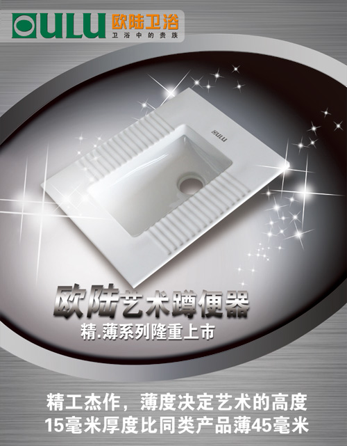 薄是一種態(tài)度,精是一種品質,精湛工藝源自對品牌的追求。金秋收獲季節(jié),歐陸衛(wèi)浴藝術蹲便器精?薄系列震撼上市,以超薄的厚度挑戰(zhàn)工藝的高度。