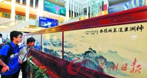 世界上最大的青花瓷板畫首次在廣州亮相。日前,由亞組委主辦的“海上絲綢之路——景德鎮(zhèn)千年瓷文化展”在美林飾品中心開幕,匯集了以張松茂、戴榮華、李文耀為代表的100多個國家級大師600多件陶瓷工藝品,價值從幾千元到上千萬元不等,吸引了很多愛好者前來觀賞。