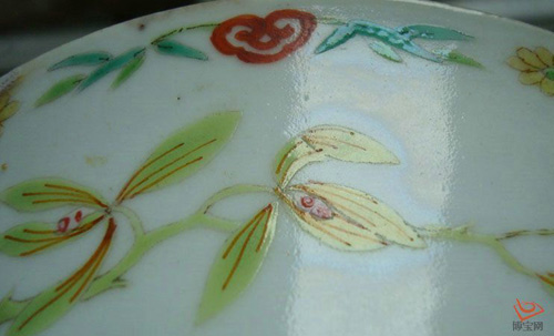 “蛤蜊光”,按照我的經(jīng)驗和了解,目前景德鎮(zhèn)還不能仿造蛤蜊光。但有蛤蜊光并不能絕對推斷彩瓷為真!只能說“有蛤蜊光,極大多數(shù)的彩瓷都是老物”。