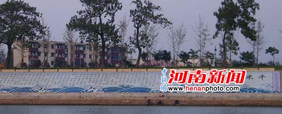 “千米九龍壁”景觀位于漯河市郾城區(qū)鎮(zhèn)河鐵牛處的河堤內(nèi)側(cè),西起107國道沙河大橋,往東延綿千余米,由3萬多塊瓷磚拼貼組合,面積約6000平方米,壁畫中形態(tài)各異的九條龍呈現(xiàn)于水天之間,象征著團(tuán)結(jié)凝聚、奮發(fā)開拓、天地和諧的龍的精神,是迄今為止世界上規(guī)模最大的陶瓷九龍壁畫。 (馬艷梅 中新社河南分社發(fā) 特邀攝影師 徐琳瑯 攝)