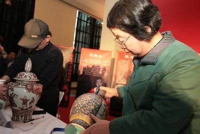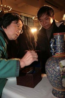 會場上,專家也紛紛拿出自己的絕活,為藏寶人解開心中的謎團(tuán)。“你這副字畫是仿當(dāng)代草圣林散之的。”宣家鑫才將一副字軸打開一半,就告訴對方。“海波,你也看看。”王春誠將手上一件瓷器遞給陳海波。陳海波連忙掏出一支小手電,翻來覆去地看了三、四遍,點(diǎn)了點(diǎn)頭,回頭告訴記者:“這的確是汪野亭先生的真跡。”并將其推薦入圍“2009上海十大民間藏寶珍品”候選藏寶。寶貝的擁有者竺先生長舒了一口氣,“這下放心了。”他說。