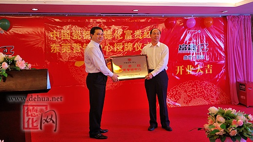 廣東省商業(yè)聯(lián)合會秘書長郭玉琨;深圳市政協(xié)原副主席、深圳市企業(yè)聯(lián)合會、深圳市企業(yè)家協(xié)會會長吳井田;東莞市政協(xié)秘書長、辦公室主任冉紅宇;深圳市商業(yè)聯(lián)合會秘書長楊秋生等領導及社會各界出席授牌儀式,德化縣人大常委會副主任林華武為東莞營銷中心授牌。