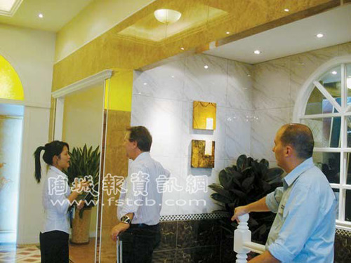 據(jù)記者所知,金尊腰線做得相當(dāng)成功,業(yè)內(nèi)許多一流大企業(yè)都找它配套腰線、花片,做得這么好為何還要轉(zhuǎn)行?李總告訴記者:其一,造腰線是典型的勞動(dòng)密集型,主要靠手工操作,用人多,而勞動(dòng)力成本近年正持續(xù)上漲,改做拋晶磚可以采用更多的機(jī)器設(shè)備,可以更好地提高產(chǎn)品的技術(shù)含量;其二,做腰線做得再大也始終是為別人配套,沒(méi)有自己的品牌,轉(zhuǎn)做拋晶磚才便于創(chuàng)立、打造、提升自有的品牌;其三,是看好拋晶磚的發(fā)展前景,有機(jī)會(huì)就此干出一番事業(yè)。與李敏輝合作多年的另一位總經(jīng)理陳英恒亦“英雄所見(jiàn)略同”,于是晶尊拋金玉石這個(gè)新品牌于2009年應(yīng)運(yùn)而生了。