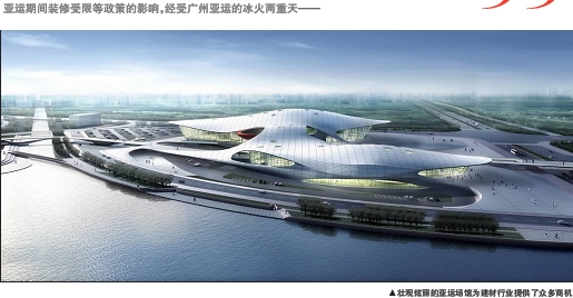 每逢重大體育賽事,特別是世界級體育賽事,都會讓現(xiàn)代企業(yè)趨之若鶩,絞盡腦汁以參與其中。2008年北京奧運會,讓許多建材企業(yè)名利雙收。廣州亞運會自2004年申辦成功后,投入了大量經(jīng)費用于場館、市政建設(shè),建材企業(yè)頗為受益,特別是“近水樓臺”的佛山陶瓷,成為許多亞運工程的陶瓷提供商,眾多陶企展開聲勢浩大的“亞運營銷”。在許多企業(yè)盡情享受亞運工程帶來的豐厚收益的同時,也受到了廣州亞運會臨舉辦之際因環(huán)境治理、關(guān)停污染企業(yè)、亞運期間裝修受限等政策的影響,經(jīng)受廣州亞運的冰火兩重天——