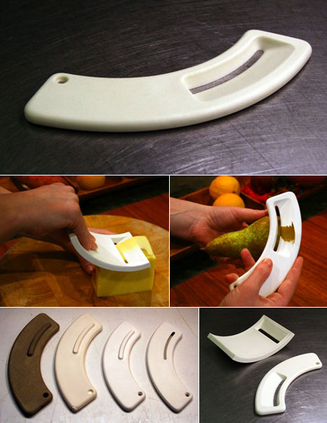 這是一款剛剛獲得2008 Design Directions設(shè)計(jì)大賽冠軍的一組設(shè)計(jì)。這組設(shè)計(jì)由兩個(gè)產(chǎn)品組成,一個(gè)瓜果削皮器和一個(gè)黃油切刀。