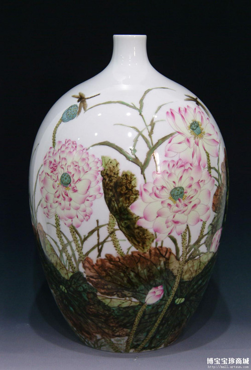 江月光粉彩《荷塘》瓶 (圖片來源:博寶寶珍商城)
