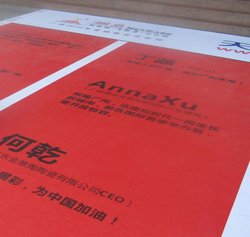 今天開始,在廣州亞體中心場館與天河城北門廣場,兩條噴繪了2010條亞運(yùn)祝福的“亞運(yùn)之路”呈現(xiàn)在行人面前。