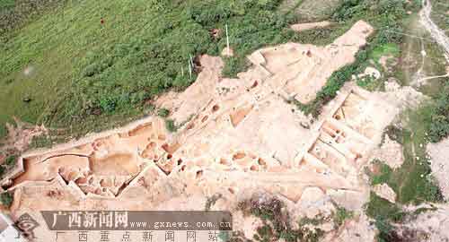 窯址發(fā)掘現(xiàn)場(chǎng)航拍圖。桂林鑫鷹公司航拍 廣西文物考古研究所供圖
