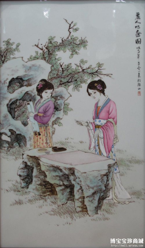李一來(lái)粉彩《麗人作畫(huà)圖》瓷板 (圖片來(lái)源:博寶寶珍商城)