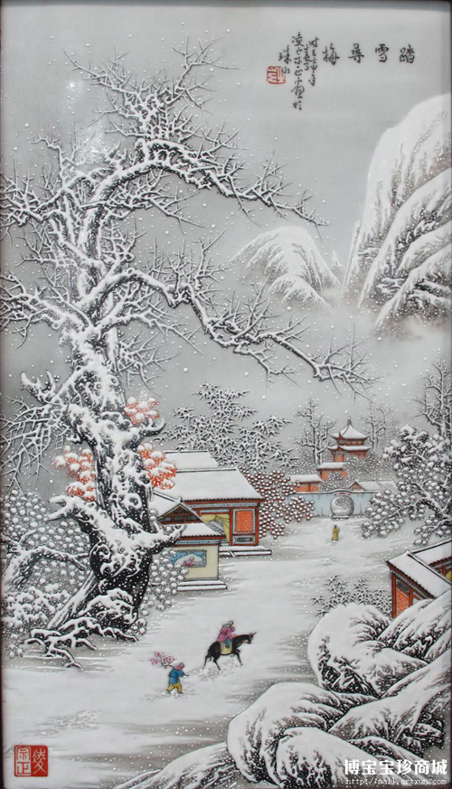凌宗正粉彩《踏雪尋梅》瓷板 (圖片來源:博寶寶珍商城)