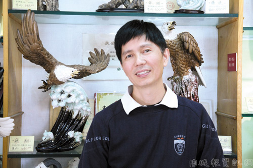 創(chuàng)作風格:霍冠華作品主要以鷹為題材進行創(chuàng)作,追求“形神兼具”的藝術效果,有石灣新一代“鷹王”的美譽。