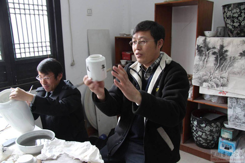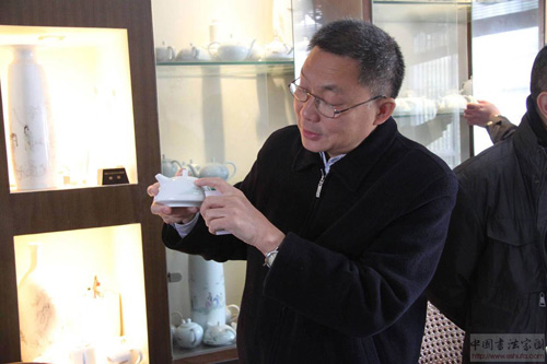 張書記在杜建新工作室交流陶瓷書畫創(chuàng)作