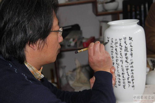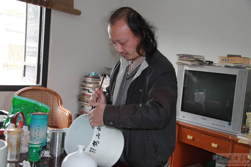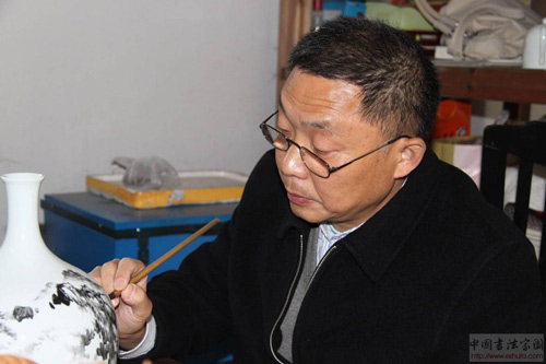 王剛秘書長進行陶瓷書畫創(chuàng)作