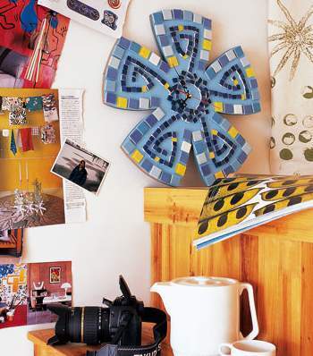 一款普通的花形掛鐘,因?yàn)轳R賽克的參與而精彩。馬賽克拼花在視覺上給人美感,由于沒有填縫,高低錯(cuò)落更有一種立體感,當(dāng)嘀嗒嘀嗒的聲音把你的目光吸引到這朵花上的時(shí)候,你是否聞到春的氣息?