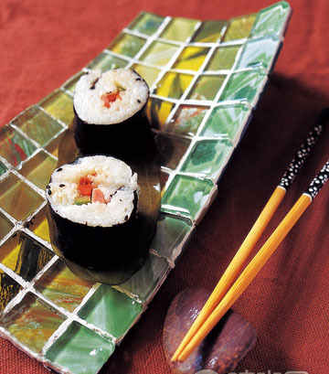 看慣了家里的平盤,這款自由扭轉(zhuǎn)的壽司盤是否給了你一點(diǎn)點(diǎn)驚喜?新型的玻璃馬賽克本身就有裝飾的花紋圖案,有點(diǎn)寫意,很適合做壽司盤,強(qiáng)化了它濃濃的東方味道。不過,由于它不是平的,制做起來就多了道工序,兩層馬賽克之間就需要夾進(jìn)一層薄的鐵板或者鐵網(wǎng),以固定它的造型。