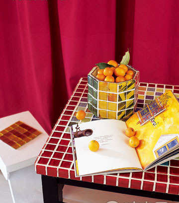 桌面是平的,常見的形狀是方或者圓,用拼貼墻面的方法拼貼桌面,應(yīng)該不是很難的事。不用敲碎,因?yàn)槊娣e比較大,可以自由設(shè)計(jì)圖案,或者干脆就放滿桌的數(shù)字或者字母,如果是餐桌,就一定要選增加食欲的鮮艷顏色。玻璃馬賽克使桌面顯得干凈透亮,也很好清理。