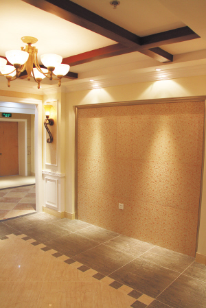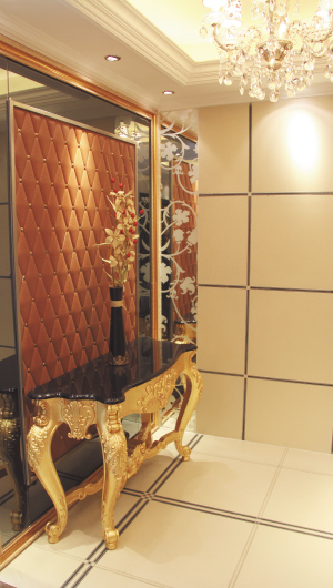 意利寶展廳中展示的立體感十足的仿壁紙瓷磚實景。