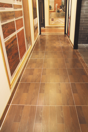 新中源展廳中仿木紋瓷磚實景,更適合書房、臥室等需要讓人感覺沉靜、舒適的環(huán)境。