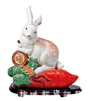 乖巧的兔子調(diào)皮地爬到豐滿紅潤(rùn)的蘿卜上面給大家送去一串沉甸甸的銅錢,同時(shí)也為人們送來“和氣”;粜沣y告訴記者,這個(gè)《和氣生財(cái)》的靈感來自世博晚會(huì),“夜空中煙花閃耀成一個(gè)大大的“和”字,這一幕讓我感觸很深,在創(chuàng)作的時(shí)候就用上了這個(gè)靈感。”