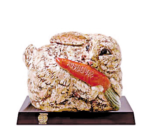 這幾年,潘柏林陶塑藝術(shù)研究院創(chuàng)作的生肖公仔都屬限量版精品。為了今年的創(chuàng)作,潘柏林專門在工作室飼養(yǎng)了2只兔子,每天觀察兔子的神態(tài)表情。“兔子看起來胖嘟嘟的,其身體結(jié)構(gòu)及骨感不如老虎,塑造一款神韻十足的‘兔’生肖不是易事。”潘柏林說,經(jīng)過一段時(shí)間觀察,他越來越覺得,兔子很可愛、很通人性。因而他把兔子姿態(tài)做得很祥和、很溫馨。”