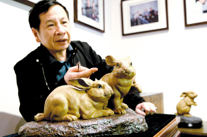 劉澤棉的作品《玉兔迎春》。/李星 攝