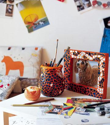 一塊塊馬賽克能做什么?如果只是將馬賽克運用在衛(wèi)生間或廚房,那你就落伍了。如果僅把馬賽克砌拼成裝飾畫,那你離潮流還不算太遠;如果你已經把馬賽克變成了相框、花瓶、燭臺、茶幾、矮凳、掛鐘、裝飾鏡等家居品,那么恭喜你,你開始理解了這種古老鑲嵌藝術的時尚魅力。