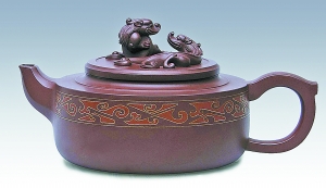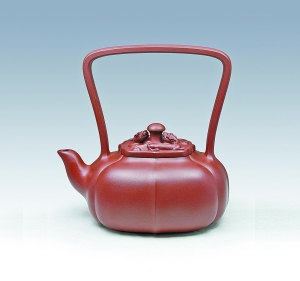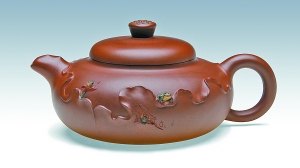 他的紫砂作品有多種類型。他既能夠設計制作簡潔概括的幾何形體類的“光貨”,充分顯示著挺秀、嚴整和自然天成的生命力,給人以飽滿和充實的印象。他更擅長設計制作象形取意的自然形態(tài)的“花貨”,而這種類型的作品,也多是以“光貨”作為造型主體的基本型,再加以選擇人物、動物或植物等不同題材的紋樣作為裝飾,構(gòu)成了豐富多樣與和諧統(tǒng)一的整體效果。他在制作“花貨”的裝飾和構(gòu)件的塑造能力,可以和象牙雕刻、石印治鈕以及琢玉鏨銅的工藝美術(shù)家比肩。他所掌握的技藝是比較全面的,他既掌握了“光貨”器物造型特點和工藝制作的技術(shù)范式,同時又練就了一手精到的塑造自然形態(tài)的本領。多種自然物象經(jīng)他的“慘淡”經(jīng)營,巧思精制,表現(xiàn)出細致入微和生動自然的意趣。應該說他諳熟“光貨”和“花貨”兩種不同類型的紫砂工藝技術(shù)和藝術(shù)特點,并且在二者之間拓展出一片園地,創(chuàng)造了個人作品的風格特點,并且獲得了豐收。