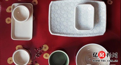成組的中式的陶瓷餐具更符合現代人的使用習慣。散落的碎花點綴在紅色的漆盤中,東方韻味躍然于餐桌上。
