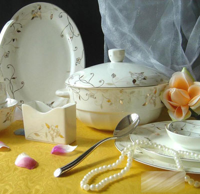 陶瓷餐具,陶瓷的傳統(tǒng)概念是指所有以粘土等無機非金屬礦物為原料的人工工業(yè)產(chǎn)品。它包括由粘土或含有粘土的混合物經(jīng)混煉,成形,煅燒而制成的各種制品。由最粗糙的土器到最精細的精陶和瓷器都屬于它的范圍。對于它的主要原料是取之于自然界的硅酸鹽礦物(如粘土、長石、石英等),因此與玻璃、水泥、搪瓷、耐火材料等工業(yè),同屬于“硅酸鹽工業(yè)”的范疇。陶瓷餐具的燒制和應(yīng)用在我國有著悠久的歷史,其造型多樣、色彩斑斕、手感清涼細滑,容易洗滌,深受國人喜愛。陶瓷餐具的制作方法分為釉上彩、釉下彩、釉中彩三種。 釉上彩陶瓷用顏料制成花紙貼在釉面上或直接以顏料繪于產(chǎn)品表面,再經(jīng)低溫烤燒而成,由于烤燒溫度達不到釉層熔融的程度,所以花面不能沉入釉中。用手觸摸釉上彩陶瓷,感覺花面有明顯的凹凸感;