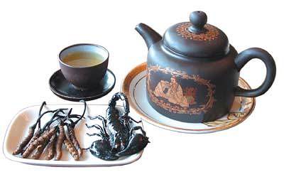 功夫湯采用多款名貴材料作為功夫湯的主料,低脂低膽固醇,有多種調(diào)理作用,而且每種湯都用不同的紫砂壺區(qū)別,甚為豪華。冬蟲草功夫湯按客人喜好選擇西藏名貴冬蟲草份量(5條、10條、15條),與水鴨或瘦肉合燉,達(dá)到調(diào)理作用。至尊蟲草皇蝎子功夫湯以瘦肉、蝎子和冬蟲草皇合燉,有解毒散結(jié)的功效。鮮靈芝燉瘦肉蛋白質(zhì)豐富,有清補(bǔ)之功效。