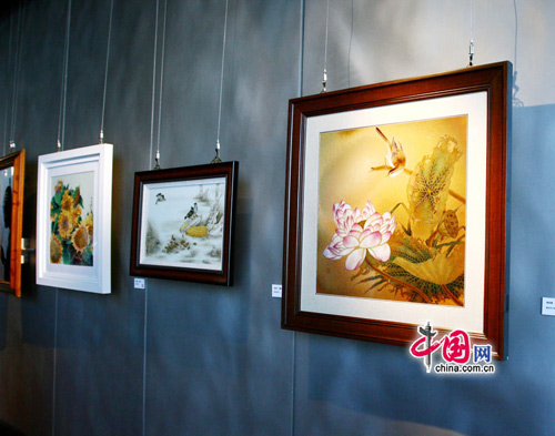 中國收藏2010十大藝術(shù)陶瓷名品展上的精美作品。瓷板畫(博夢堂 攝影報道)