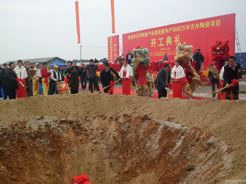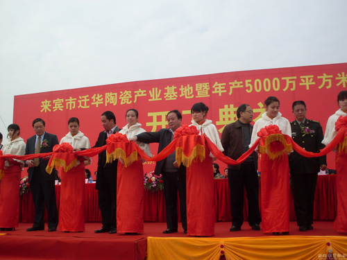 繼在廣西藤縣、湖北省浠水縣興建大型建陶生產(chǎn)基地之后,新中陶陶瓷又邁出戰(zhàn)略性擴(kuò)張的重要一步,年產(chǎn)5000 萬(wàn)平方米瓷片生產(chǎn)線項(xiàng)目落戶廣西來(lái)賓市遷江華僑工業(yè)園。該項(xiàng)目計(jì)劃于2011年第四季度投產(chǎn),投產(chǎn)后年產(chǎn)值達(dá)4 億元以上,創(chuàng)造就業(yè)崗位近1000 個(gè)。12月20日上午,開工儀式在遷江華僑工業(yè)園內(nèi)盛大舉行。來(lái)賓市委書記、市人大常委會(huì)主任張秀隆宣布項(xiàng)目開工,來(lái)賓市市長(zhǎng)楊和榮、廣西新中陶陶瓷有限公司總經(jīng)理龐景成在開工儀式上分別致辭。佛山市新中陶陶瓷有限公司董事長(zhǎng)廖偉康以及來(lái)賓市四大班子領(lǐng)導(dǎo),相關(guān)企業(yè)負(fù)責(zé)人及媒體記者共500多人見證了來(lái)賓力拓陶瓷有限公司開工奠基慶典儀式。