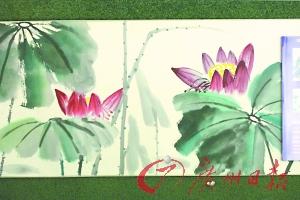 齊白石花卉精品《墨海靈光》整幅手卷以大寫意手法完成,估計(jì)價(jià)值上千萬港元。全幅作品突出三朵艷紅荷花,旁邊的荷葉墨色深淺不一,力度剛毅,極富立體感。荷花與荷葉以外位置刻意留白,景致深遠(yuǎn),畫筆一氣呵成。