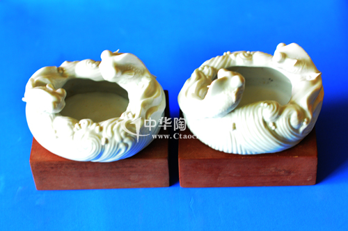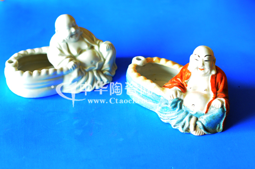 德化瓷器以如脂似玉的質(zhì)感和栩栩如生的雕塑藝術(shù)名揚(yáng)四海,獨(dú)步世界瓷林。當(dāng)然,作為家居客廳的案桌或茶幾上幾乎必備的陶瓷煙灰缸,自然也彰顯著德化瓷那特殊的藝術(shù)語(yǔ)言。自從清末以來(lái),我國(guó)市民抽煙群體越來(lái)越龐大,煙灰缸便取代了鼻煙壺,不但大量生產(chǎn),而且像鼻煙壺一樣,瓷藝師千方百計(jì)、匠心獨(dú)具、巧妙構(gòu)思、精雕細(xì)刻,賦以生動(dòng)活潑的藝術(shù)生命。童老師說(shuō):“特別是德化瓷雕煙灰缸,各種典雅瓷質(zhì)的玉‘白’和多姿多彩的藝‘雕’,都得到充分的發(fā)揮,可以說(shuō),近現(xiàn)代德化瓷藝的發(fā)展與成就,從這些瓷雕煙灰缸系列中,都可窺視到她的身影。”