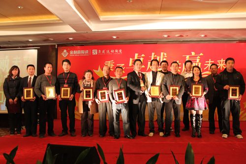 為了答謝廣大經(jīng)銷(xiāo)商朋友對(duì)品牌的支持與付出,對(duì)在2010年里取得優(yōu)異成績(jī)的經(jīng)銷(xiāo)商代表進(jìn)行表彰,樹(shù)立標(biāo)桿榜樣,在晚會(huì)上,康建運(yùn)動(dòng)陶瓷、金利高陶瓷還同時(shí)頒發(fā)了金牌經(jīng)銷(xiāo)商獎(jiǎng)及品牌推廣、經(jīng)營(yíng)管理、銷(xiāo)售渠道、店面形象等各類(lèi)單項(xiàng)獎(jiǎng),讓獲獎(jiǎng)經(jīng)銷(xiāo)商們的辛勞付出得到表彰,也讓經(jīng)銷(xiāo)商們感受到了來(lái)自廠家的鼓勵(lì)與支持力量。
