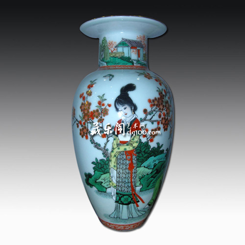 古彩,以五色競妍、富麗堂皇、線條剛勁、形象概括、構(gòu)圖圓滿,具有濃郁的中國民族藝術(shù)特征而著稱于世。在現(xiàn)當(dāng)代從事古彩創(chuàng)作的藝術(shù)家中,中國工藝美術(shù)大師戴榮華老師是當(dāng)代古彩真正傳人,古彩這一藝術(shù)奇葩在他手中推到了登峰造極的水平,是名副其實(shí)的“當(dāng)代官窯”。此次展覽活動有兩件古彩精品首次亮相藏樂閣,一件是2007年曾經(jīng)拍賣過的《紅葉傳情》,一件是2010年戴榮華老師創(chuàng)作的精品《人面桃花相映紅》。兩件作品人物神態(tài)各有特點(diǎn),讓人不由得想起“三千粉黛無顏色“這個經(jīng)典絕句。