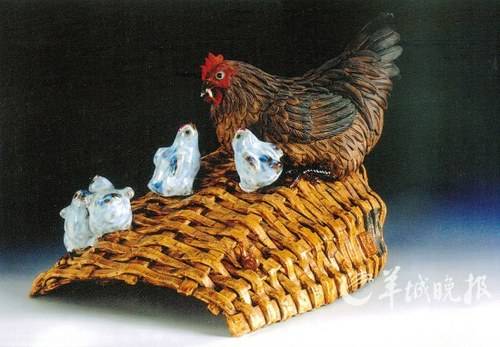“石灣公仔”美譽遠傳的背后,是一代代大師,一批批藝術家與工匠的不懈努力和嚴謹?shù)墓に噦鞒。其中,我們鮮少見到女性陶藝家的身影,而何惠娟便是其中出色的一位。從被廣州藝術博物院永久收藏的溫馨可愛的《世上只有媽媽好》那雞媽媽看護著幾只小雞的細膩情懷、到前不久獲得第九屆全國陶瓷藝術設計創(chuàng)新評比金獎的《年年有余》中悠然自得的魚鷹所展現(xiàn)的簡練與深遠意味,何惠娟以其女性細膩的情感,含蓄的表現(xiàn)方式,為我們展現(xiàn)了她眼中的愛與美。