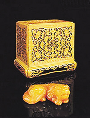 2006年香港蘇富比秋拍,一件明朝的《田黃石雕瑞獅鎮(zhèn)紙》并附有鏤雕花卉紋象牙蓋盒座,引起買(mǎi)家的競(jìng)逐。最后只剩下曹興誠(chéng)與澳門(mén)何鴻燊代理人兩方競(jìng)逐,最終,曹興誠(chéng)以近4000萬(wàn)港元的價(jià)格將其拍下。據(jù)說(shuō),何鴻燊對(duì)錯(cuò)失這件作品一時(shí)難以釋?xiě),事后透過(guò)經(jīng)紀(jì)人向曹興誠(chéng)表達(dá)購(gòu)買(mǎi)收藏之意。這件田黃作品至今仍穩(wěn)穩(wěn)地放在曹興誠(chéng)的藏品柜里。