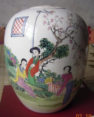 桃花仕女燈籠罐
