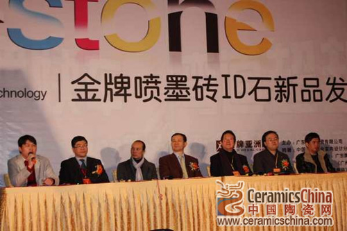 2011年1月12日,廣東金牌陶瓷有限公司在廣州碧桂園鳳凰城酒店舉行金牌噴墨磚ID石新品“ID—STONE”發(fā)布會暨2011經(jīng)銷商年會。中國建筑衛(wèi)生陶瓷協(xié)會會長葉向陽、中國建筑學會室內(nèi)設(shè)計分會副會長勞智權(quán)、西班牙原創(chuàng)噴墨設(shè)計師Danel等嘉賓,與廣東金牌陶瓷有限公司生產(chǎn)總經(jīng)理梁志啟、營銷總監(jiān)冼潤林,金牌亞洲陶瓷營銷總經(jīng)理羅良照,和來自全國各地的300多位經(jīng)銷商共聚一堂,一起見證具有革命性創(chuàng)新和前瞻性環(huán)保理念的“ID—STONE”新品的閃耀面世。