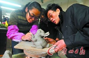 可愛活潑的兔寶寶、表情夸張的卡通兔、年味十足的迎春兔。昨日的佛山新石灣美陶廠儼然成了兔子的樂園,劉澤棉、霍家榮等大師級陶藝家創(chuàng)作的100余款兔年生肖陶瓷在此展出。到此參觀的市民,除了欣賞大師作品之外,還能動手制作屬于自己的紀念陶瓷品。20位屬兔的幸運市民也來到工作間,在陶藝大師的指導下,動手創(chuàng)作屬于自己的個性化石灣兔公仔。