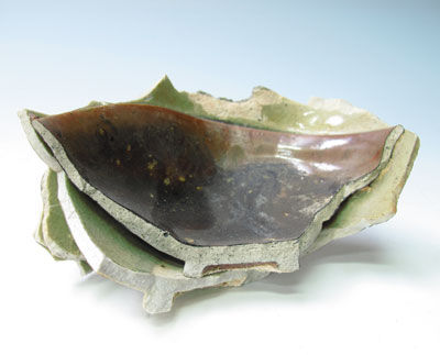 古浙江青白瓷與黑瓷同燒粘連廢品
