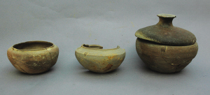 三只罐子形狀大同小異,其中兩只無蓋,一只有蓋。無艷麗色彩,也沒有精美紋飾,乍一看和傳統(tǒng)人家中的樸素壇壇罐罐沒太大區(qū)別。