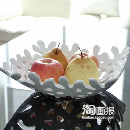 白色鏤空陶瓷平果盤糖果家居擺設(shè)儲(chǔ)物居家日用