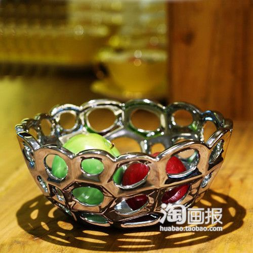 小號(hào)銀色鏤空蜂巢果盤零食盤水果盤