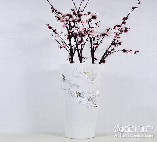此款落地花瓶瓶口寬闊,外觀挺拔大方、精美典雅,瓶身的貼花花開富貴,“枝條悠悠俏,花兒幽幽香”,意境渺渺,情意深深,是點(diǎn)綴客廳的亮麗風(fēng)景。