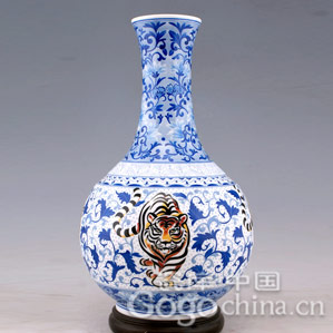 鎮(zhèn)宅之寶大師手繪青花威風(fēng)虎賞瓶