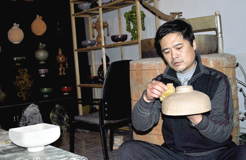 如今,沉寂十余年的海城陶瓷工藝被列為市級非物質(zhì)文化遺產(chǎn),與一個(gè)名叫韓宇的人不無關(guān)系,他是該工藝的唯一代表性傳承人。記者見到韓宇時(shí),他還在那個(gè)不足20平方米的小屋里研制陶器:一個(gè)靠在墻面上的陳列柜,一張床,一個(gè)窯,一地未完成的陶藝胚。這些年,韓宇就是這樣堅(jiān)持研究發(fā)展海城陶瓷工藝的。韓宇的父親曾是海城陶瓷四廠的技術(shù)科科長兼美術(shù)師,他從小就對陶瓷有著莫名的親切感。1980年,18歲的韓宇也進(jìn)了陶瓷廠,憑著天分,韓宇在產(chǎn)品設(shè)計(jì)車間里一干就是17年,直到1997年下崗。之后兩年多的時(shí)間里,韓宇換了好多工作,可始終對制陶不死心。韓宇偶然在電視上看到一個(gè)叫邢良坤的大連人,雖然是鉗工出身,但竟然在陶瓷工藝上獲得二十幾項(xiàng)國際發(fā)明專利,一百多個(gè)國家的博物館收藏其作品,而且邢良坤“撂下狠話”:誰能搞出我這東西,我的家產(chǎn)全都給他!這個(gè)在韓宇眼中“挺傲”的人形容自己的作品“前無古人,后無來者”,這激起了韓宇的覺醒,“一個(gè)門外漢都成為了行業(yè)內(nèi)的大師,我怎能輕易放棄!”
