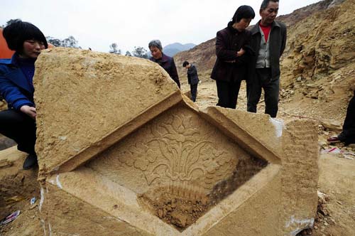 “不是枕頭。沒人愿把‘睡美人’裝盒子里面,各人把腦殼擱盒子上,那樣做很不舒服喲!應是墓主人日思夜想的女人,否則不會死了都放在一塊。”親眼見到“睡美人”被放進車里的工地民工古天祥認為。